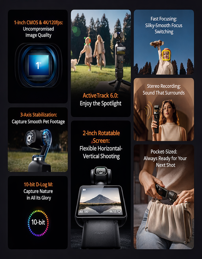 The world's smallest 4K camera that fits in your pocket. Perfect for creators, travelers, and anyone who refuses to miss life's best moments. Professional-grade footage from a device smaller than your thumb.