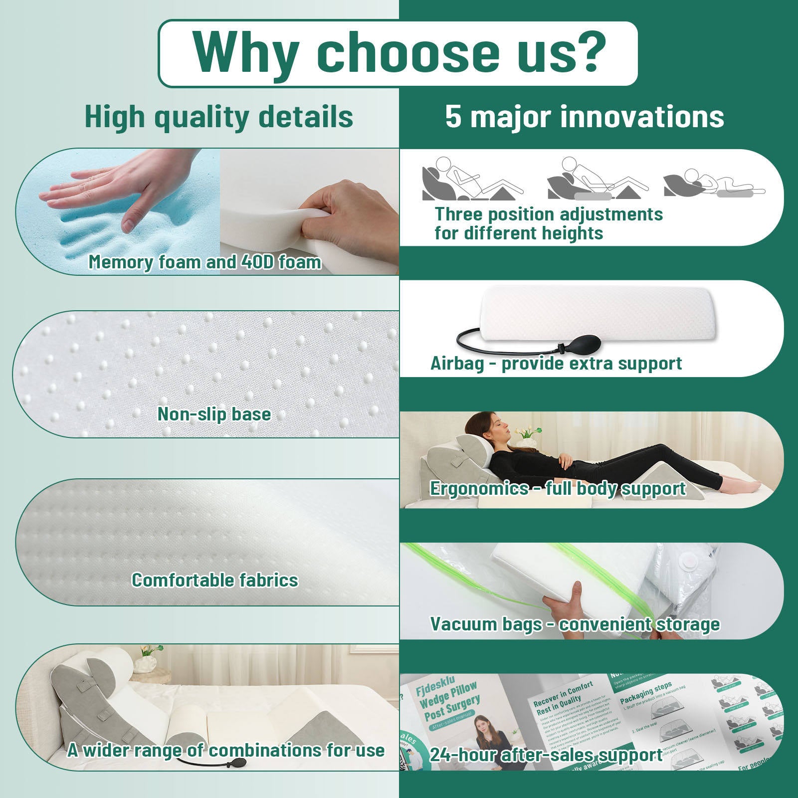 The wrong pillow is the number one cause of neck pain. Most pillows are filled with down or feathers, which don’t give your body the support it needs during the night.