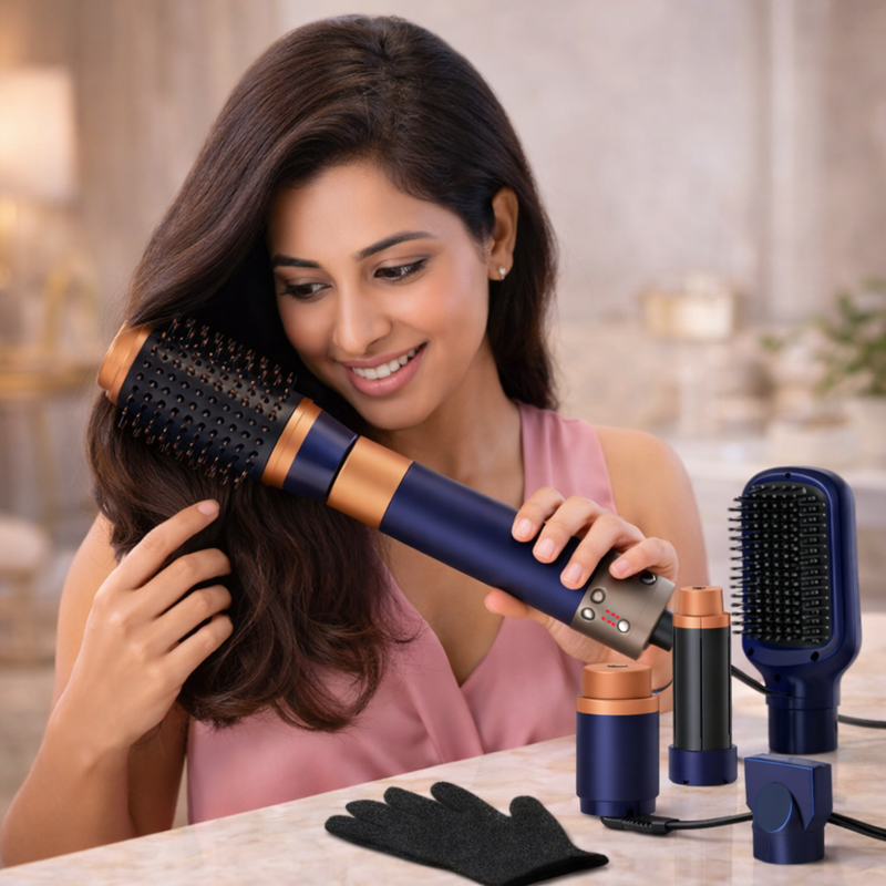 That’s exactly why we created the 7-in-1 Professional Hot Air Styler. It dries, smooths, curls, and adds volume in one effortless step. With even heat distribution and ionic technology, you get salon-quality results at home—less frizz, more shine, and healthier-looking hair every day.